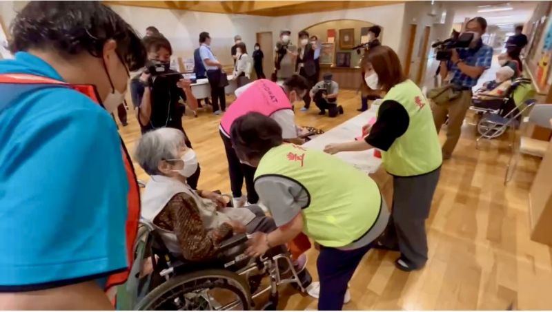 避難の際には、同じ町内にある中津市社会福祉協議会のデイサービスより福祉車両で応援に来て頂き搬送するという連携も行われました。