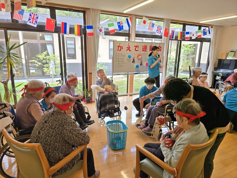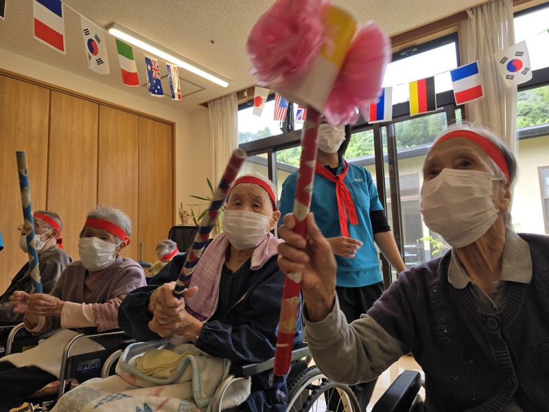 地域の方にご参加いただき、ご入居者様を交えて椅子に座った状態でも実施可能な運動やコグニサイズに挑戦されました!コグニサイズは「運動」と「認知課題」を組み合わせたプログラムで認知症の予防効果が期待できるエクササイズです。慣れ親しんだ歌に合わせての運動に取り組まれましたが笑いが出たり「あれ?結構難しい~」とご感想が聞かれました。運動の後はお茶やジュース、コーヒーを飲まれながら本耶馬渓のお話や参加者様同士の繋がりの話等和やかなカフェタイムを過ごされました。「家にじっとしてないでここに誘ってもらって来てよかった~、楽しかった。」とご感想を頂くことができ大変うれしく思います。