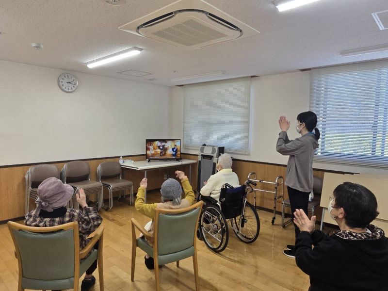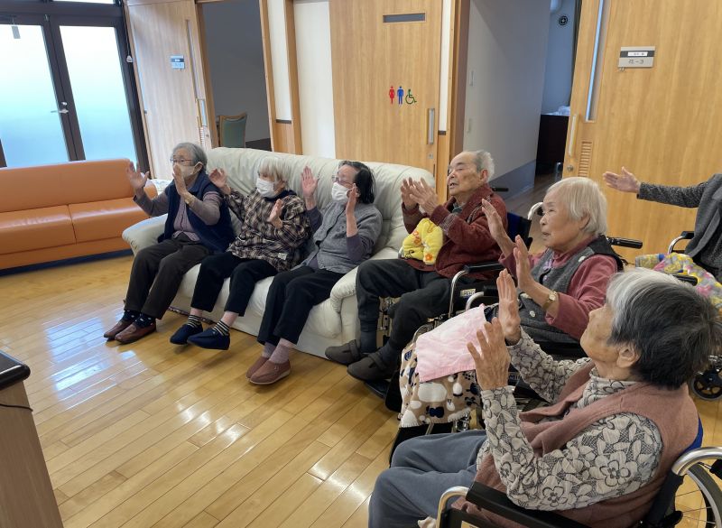 5月21日に「オレンジカフェかえで」を開催しました。地域の皆様にご参加いただき、ご入居者様と一緒に、椅子に座ったままでもできる運動やコグニサイズに挑戦していただきました。コグニサイズとは、「運動」と「認知課題」を組み合わせた認知症予防が期待できるエクササイズです。今回は、馴染みのある歌に合わせて体を動かしながら取り組んでいただき、笑い声が上がったり、「あれ?結構難しい~」という声も聞かれ、和やかな雰囲気で楽しんでいただけました。運動のあとは、コーヒー等を飲みながら、地元のお話や参加者同士のつながりについて語り合う、ゆったりとしたカフェタイムに。「家にじっとしてないで、ここに誘ってもらって来てよかった。楽しかった。」という嬉しいお声もいただき、スタッフ一同大変励みになりました。